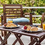 - ❓¿Hay una cocina disponible en el apartamento para uso de los huéspedes?Sí, el apartamento está equipado con una cocina completa y ofrece también un horno de microondas, un hervidor eléctrico y menaje de cocina.